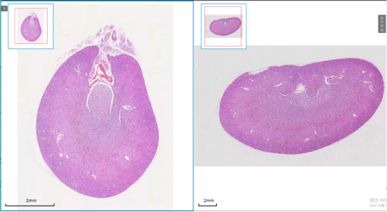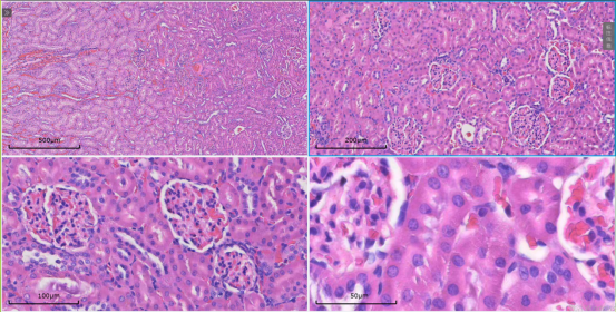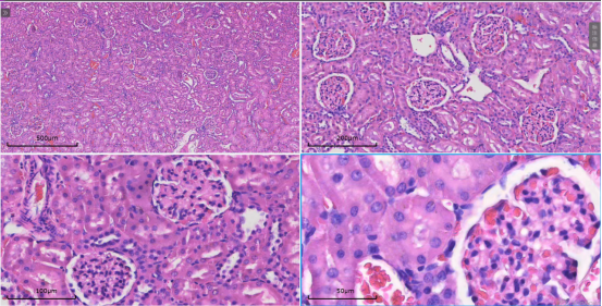 多级倍数联动:在任意全景图中,可直接点选感兴趣区域(如皮质区的某个肾小球),并无缝切换至不同放大倍数进行观察,实现高效、精准的靶向分析。