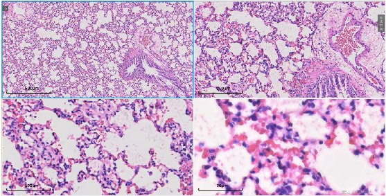 20倍:分析肺泡隔的厚度及毛细血管分布。 -