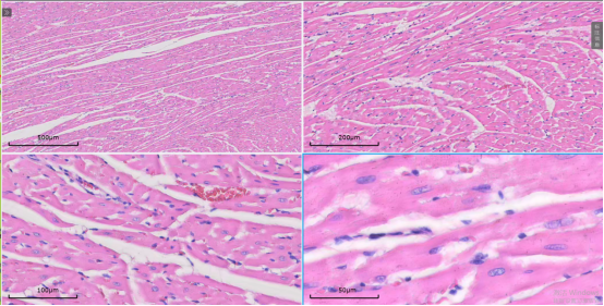 40倍:精细观察肌原纤维及线粒体分布等超微结构。