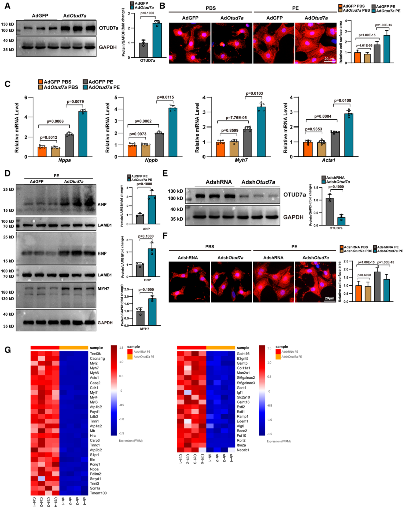 OTUD7a在体外调节去氧肾上腺素诱导的心脏肥大