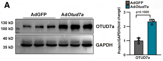 Ad-OTUD7a转导的新生大鼠心肌细胞中OTUD7a成功过表达